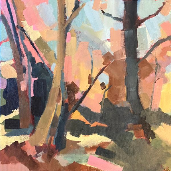 Typically using nature for inspiration Jim’s paintings explore the tension between representation and abstraction, framed within carefully constructed compositions. His colourful marks are applied quickly, building layers that imbue the work with energy and purpose, while maintaining a looseness which allows space for interpretation by the observer.